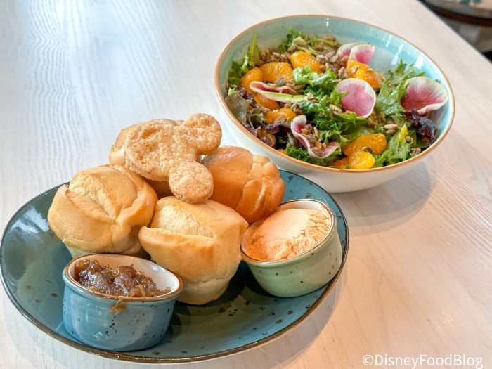 Then we started in on the Buttery House-baked Pull-apart Rolls (which also featured a Cheddar Mickey biscuit!)