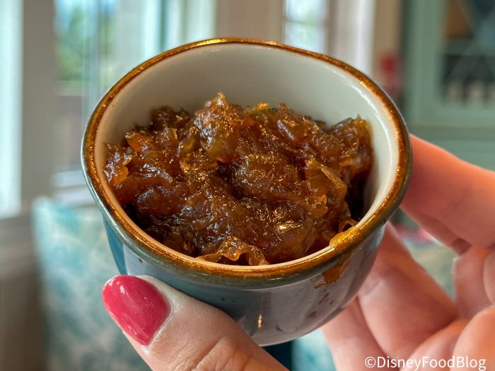 The caramelized onion jam was equally as divine. It was a sweet spreadable jam that had a subtle savory flavor to it from the onions. This was another flavor combination that turned out to be a delight but really sent our taste buds and our minds into a battle of wills.