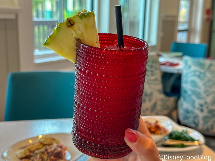 This drink knocked it out of the park for us in all the best ways. The presentation between the yellow and light blue layers really could help you see the resemblance to Flounder, Ariel’s fishy friend from The Little Mermaid movies.