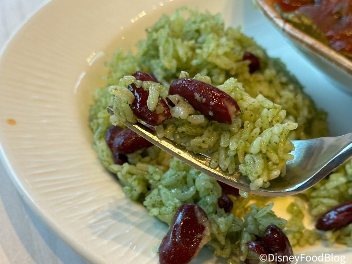 There’s a TON to go over about this one so we’ll start with the more simple plate of sides. Kicking off the sides to explore we started by tasting the cilantro rice and beans.