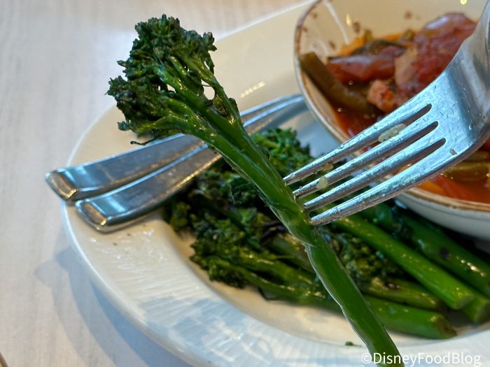 We found it to be buttery with hints of garlic that was cooked very well! The tops were soft while maintaining the crunchiness of the stalks (but not overcooked.) This served as an enjoyable side but not the most memorable part of our meal.