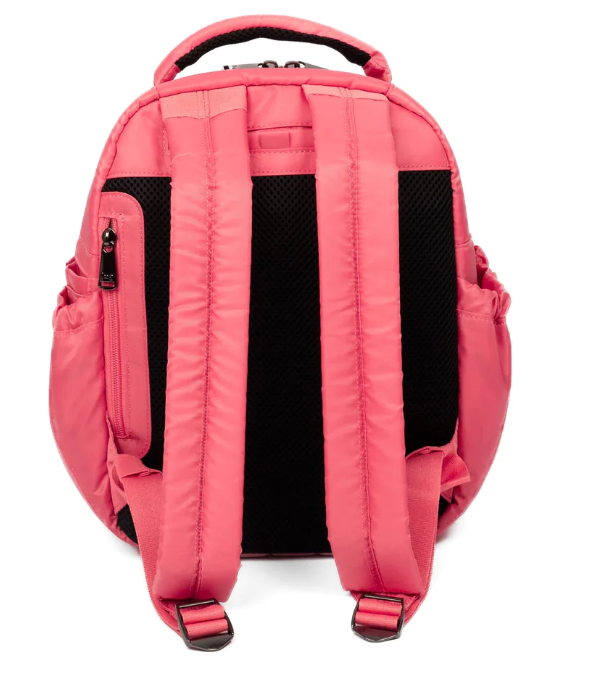 Now on to the main compartment of this Lug backpack. Inside there’s even more organization, including a plastic zippered pocket great for storing a small tube of sunscreen, hand sanitizer or other cosmetics that could spill, more pockets for small items, and a little pouch for sunglasses. I especially appreciate this because I wear prescription glasses, and usually switch between my regular specs and prescription sunglasses several times a day!