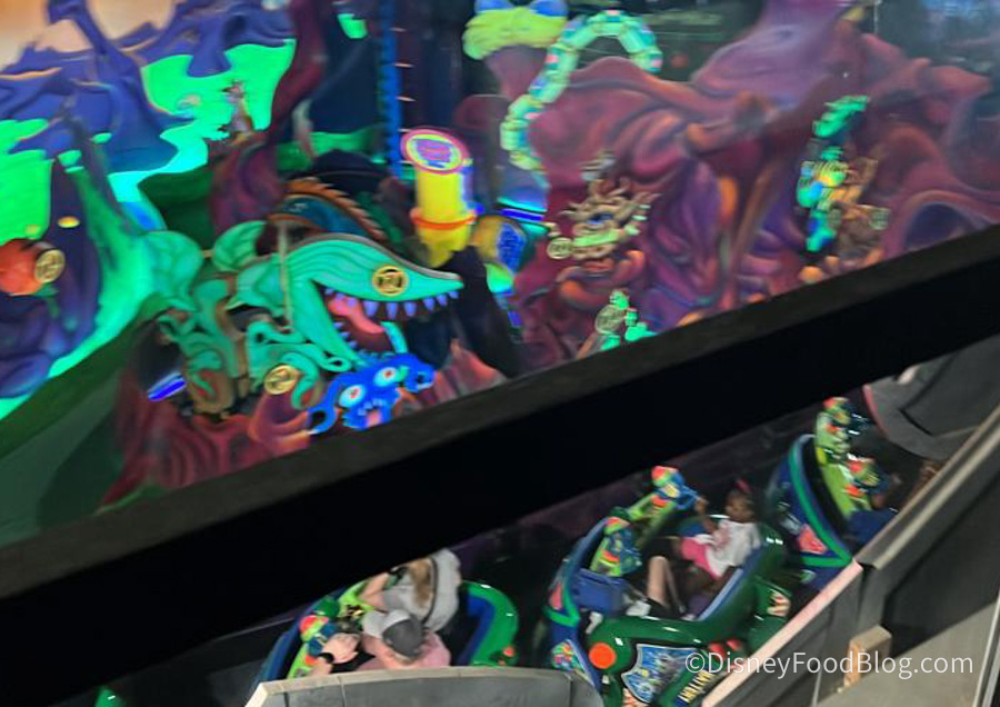 Not only that, but we noticed that Buzz Lightyear’s Space Ranger Spin was also broken down with guests on it this morning. As we passed by on the PeopleMover (before it broke down) we were able to see people stopped in ride vehicles with the lights turned on.