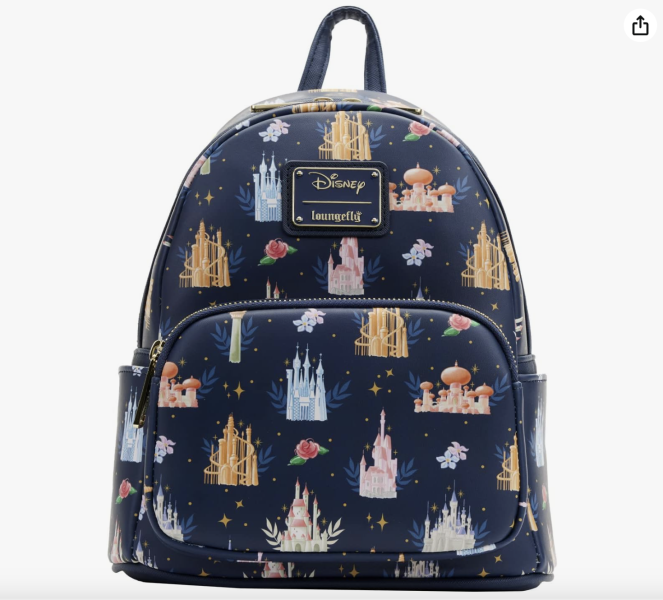 We’re in love with this backpack, which is also all about the Disney princesses. This one shows each of their castles! How many castles do you recognize in the pattern?