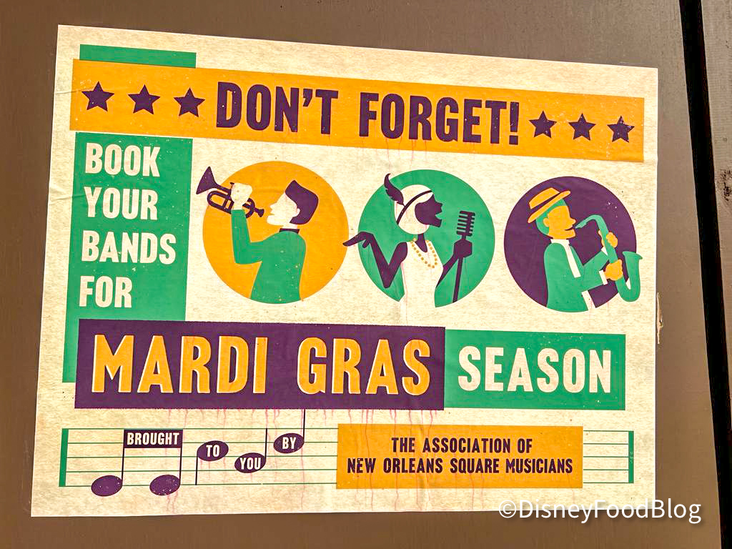 Now, there are elements of Mardi Gras surrounding the construction! We saw this “book your bands” signage that alludes to the idea that folks are preparing for big parties.