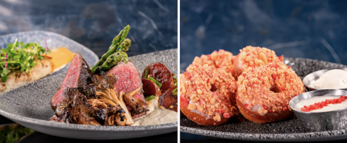 - Frozen Old Fashioned: Non-alcoholic bourbon-flavored ice cream, bitters crema, orange zest glaze, and cherry spheres (New)
