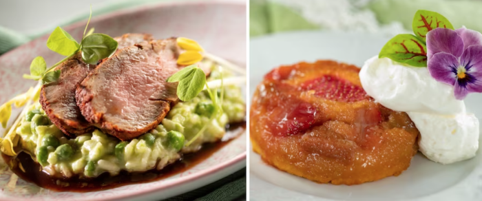 At the EPCOT Farmers Feast food booth (called outdoor kitchens during this festival), you’ll find an entree and dessert available for tasting. However, this menu won’t stay the same throughout the entire festival — it’s going to change THREE TIMES between February and May!