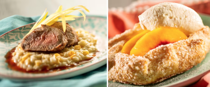 And finally, the third menu is the Summer Solstice menu, available April 28th through May 27th. You’ll be able to grab a Seared Pork Tenderloin and a Peach Galette to try. Both of these are NEW menu items for 2024. Look out for that Peach Galette — it’s made with ginger vanilla whipped cream. YUM!