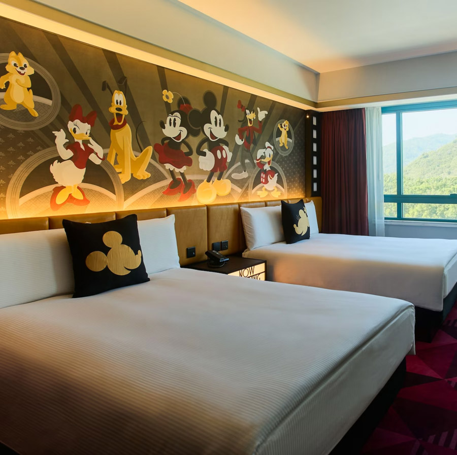 Disney’s Hollywood Hotel at Hong Kong Disneyland is getting a Mickey and Friends update! The newly designed “Mickey and Friends” rooms feature some of your favorite classic Disney characters. You’ll see Donald Duck’s family, like Huey, Louie, Dewey, and Webby. But it’s the HUGE mural above the bed that will really get your attention. There’s Mickey, Minnie, Chip ‘n’ Dale, Goofy, Donald, Daisy, and Pluto. Yep, the WHOLE gang.
