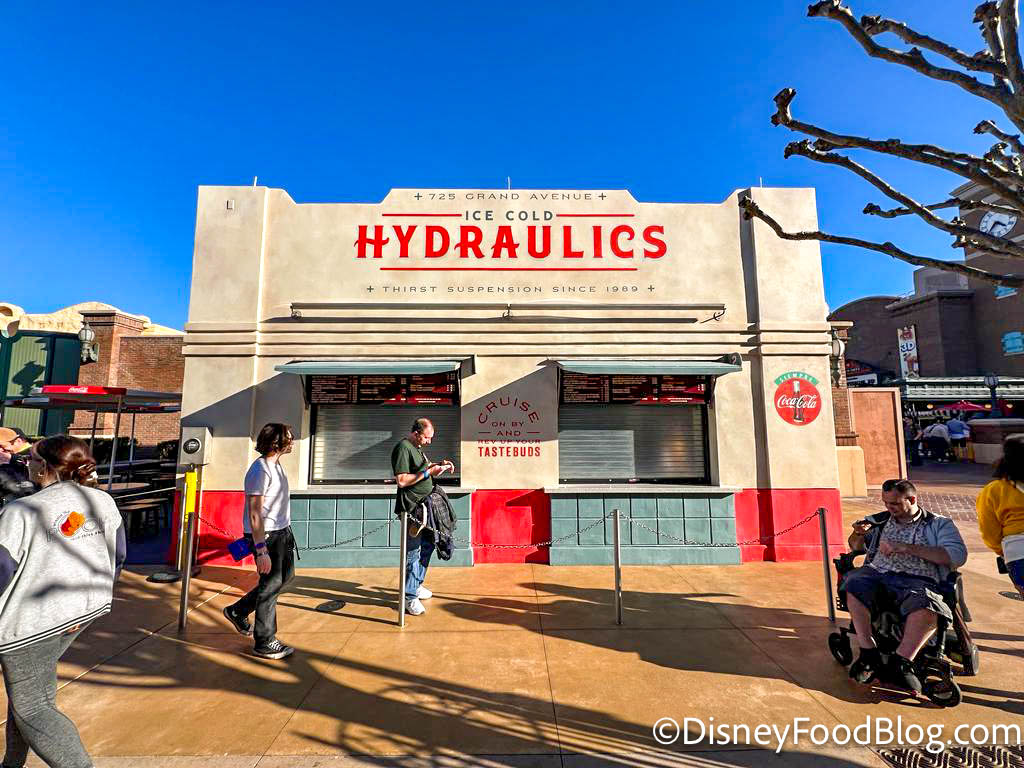 A snack stand has been under construction in the Grand Avenue area of the park for quite some time, but recently, Disney finally painted the sign — say hello to Ice Cold Hydraulics!