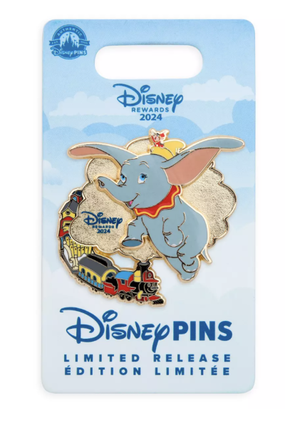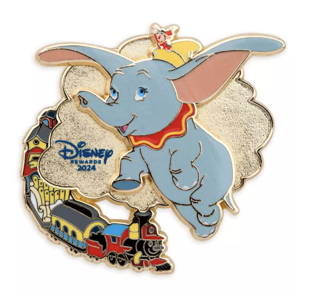 The train features Dumbo, Timothy Mouse, and Casey Jr. It also comes on a Disney Rewards 2024 card.
