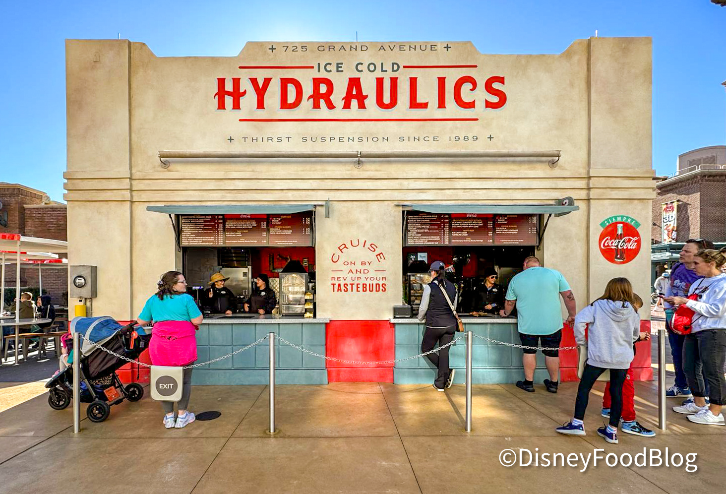 At Hollywood Studios, Ice Cold Hydraulics has officially opened in the Grand Avenue section of the park. We’ve been keeping an eye on its construction for several months, but now we’re excited to finally share a full review of the brand-new eats! Let’s dive in.