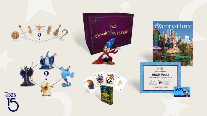 To honor the timeless tales that embody the classic enchantment of Disney, the D23 Magic & Mystery Box Collector Set is a celebration reminiscent of bygone magician kits. This extraordinary collection features a Sorcerer’s Apprentice Mickey Mouse collectible figurine, a mystery companion collectible figurine, a deck of playing cards, and a pair of exquisitely sculpted mystery pins. Additionally, it includes a Membership Card and Certificate, exclusively available to all new and renewing D23 Gold Members in 2024! Immerse yourself in the magic of whimsical companions and bewitched objects inspired by cherished Disney films like The Sword in the Stone (1963), The Little Mermaid (1989), Aladdin (1992), The Princess and the Frog (2009), Coco (2017), Encanto (2021), and more. The 2024 Gold Member Collector Set is set to commence shipping this spring.