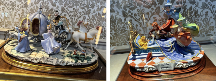At the Castle Club Lounge level of the rotunda, which you can access if you’re staying in select suites and rooms at the hotel, you’ll be able to admire these two Sleeping Beauty and Cinderella porcelain figures! They were originally located in their respective suites before the transformation, but now they’re available for all club members to see.