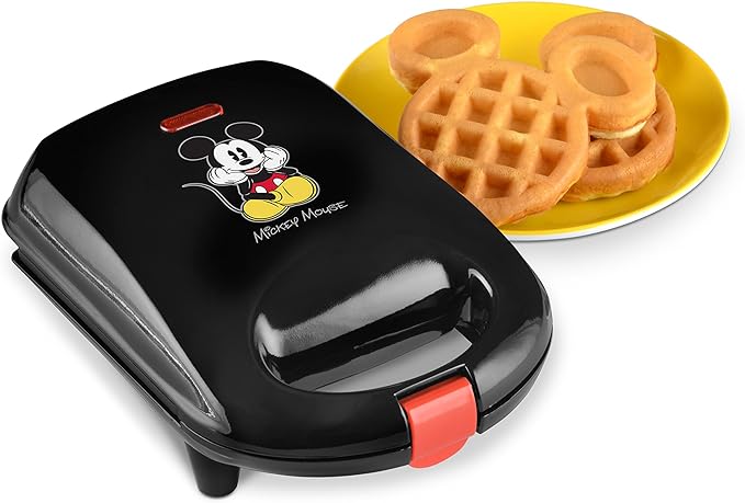 This double flip waffle maker features Minnie Mouse shaped waffles! While not traditional Mickey shaped, we think that this waffle maker offers a different and unique spin on the classic waffle and we love it!