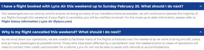 If you have a flight booked on Lynx Air after February 26th, Lynx Air will not be available for refunds, so passengers must contact their credit card company for a refund.