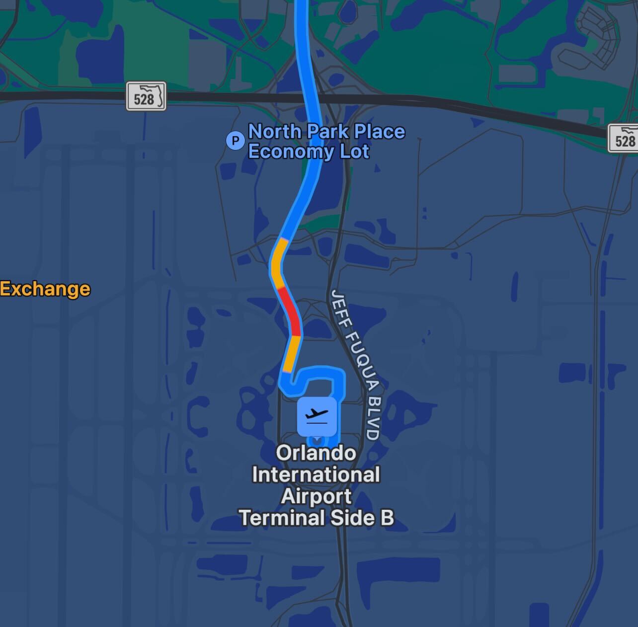 Apple Maps showed traffic back-ups on the roads leading to Terminal B throughout the evening.