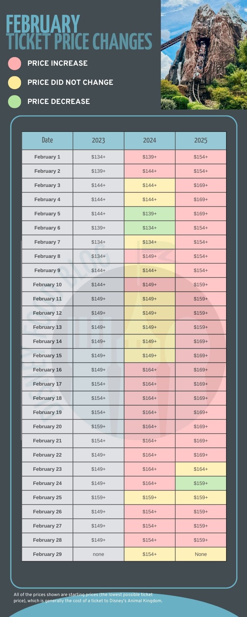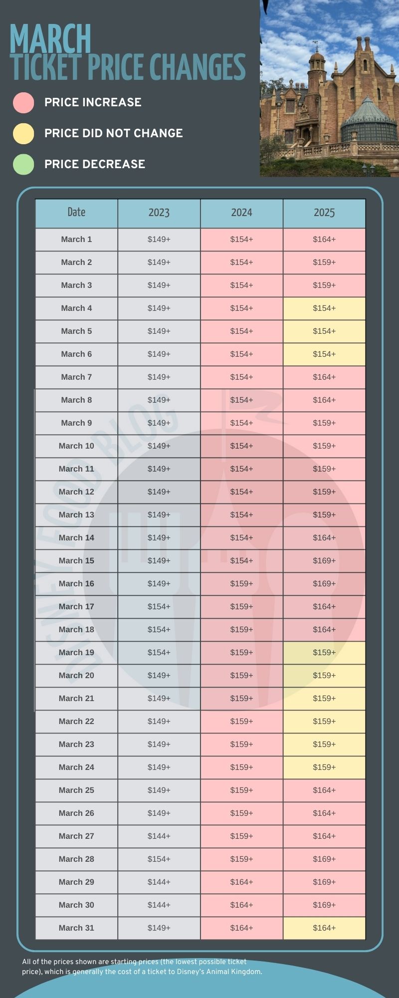 We saw increases on these starting prices, but note that Park Hopper tickets have also increased in price.