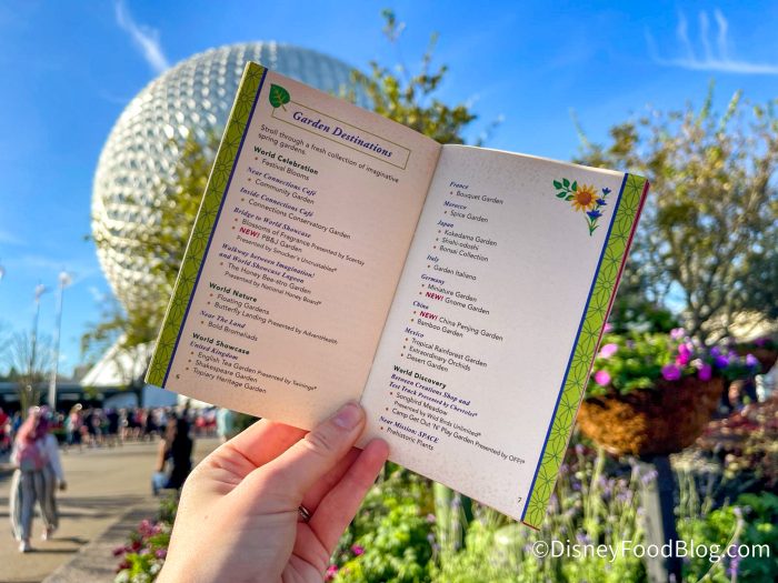 The 2024 EPCOT Flower and Garden Festival has officially begun in Disney World. And that means it’s time to snack and sip at all of the Outdoor Kitchen Food Booths, check out all the lovely Disney topiaries, and catch a Garden Rocks concert or two! In addition to joining us here on the DFB throughout the Festival, there’s another great tool that can help you find your way around the event so you don’t miss ANY of the Festival fun… we’re talking about this year’s Flower and Garden Festival Passport!