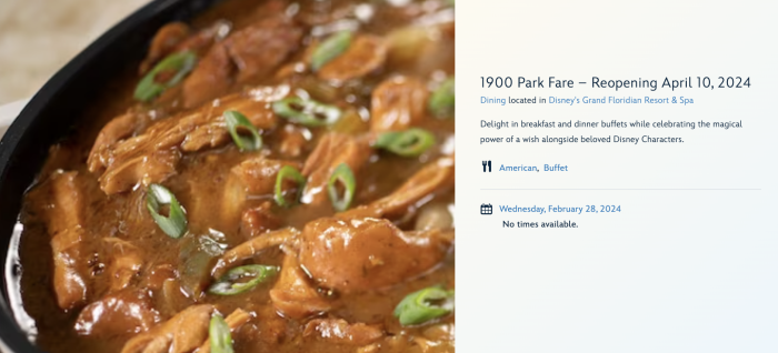 GREAT NEWS: Everyone’s Favorite Menu Item at 1900 Park Fare WILL RETURN When It Reopens in Disney World