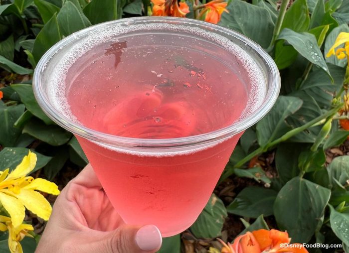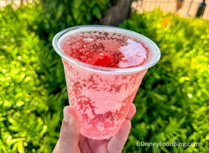 If floats aren’t your thing, you can also get the Boulevard Brewing Co. Quirk Strawberry Banana Whip Hard Seltzer for $12. This is a carry-over from Festival of the Arts. This drink is gorgeous, and the strawberry and banana flavors are well-balanced. It’s a light, fruity drink that’s good for a hot day. It’s not too sweet (if you’re looking for a super sweet drink, this won’t satisfy you), but the fruit flavor is fairly strong.