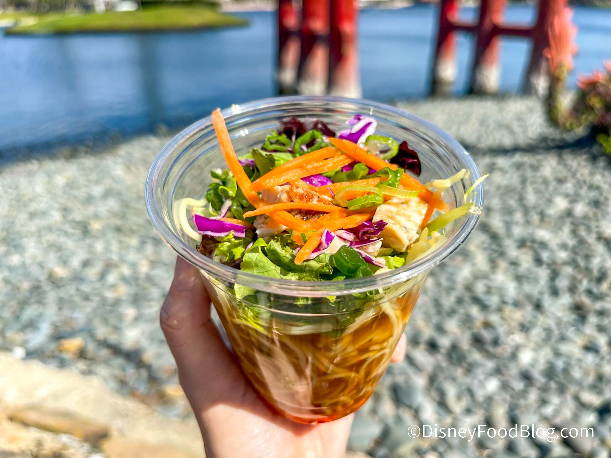 Next up is the other new item for this year, the Ramen Cup for $8.50 — Ramen salad shaken in a cup with fresh vegetables, grilled chicken, and dashi broth with chili oil and yuzu. This is not the ramen you ate in college! In fact, we are IN LOVE with this ramen.