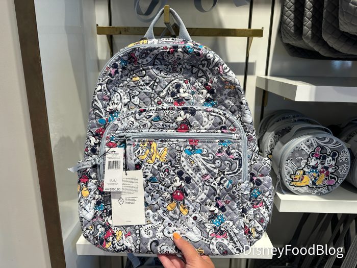 We love this Mickey and Minnie backpack because it’s so darn roomy! There are plenty of pockets along with an adorable pattern that will let people know all about your love of Disney.