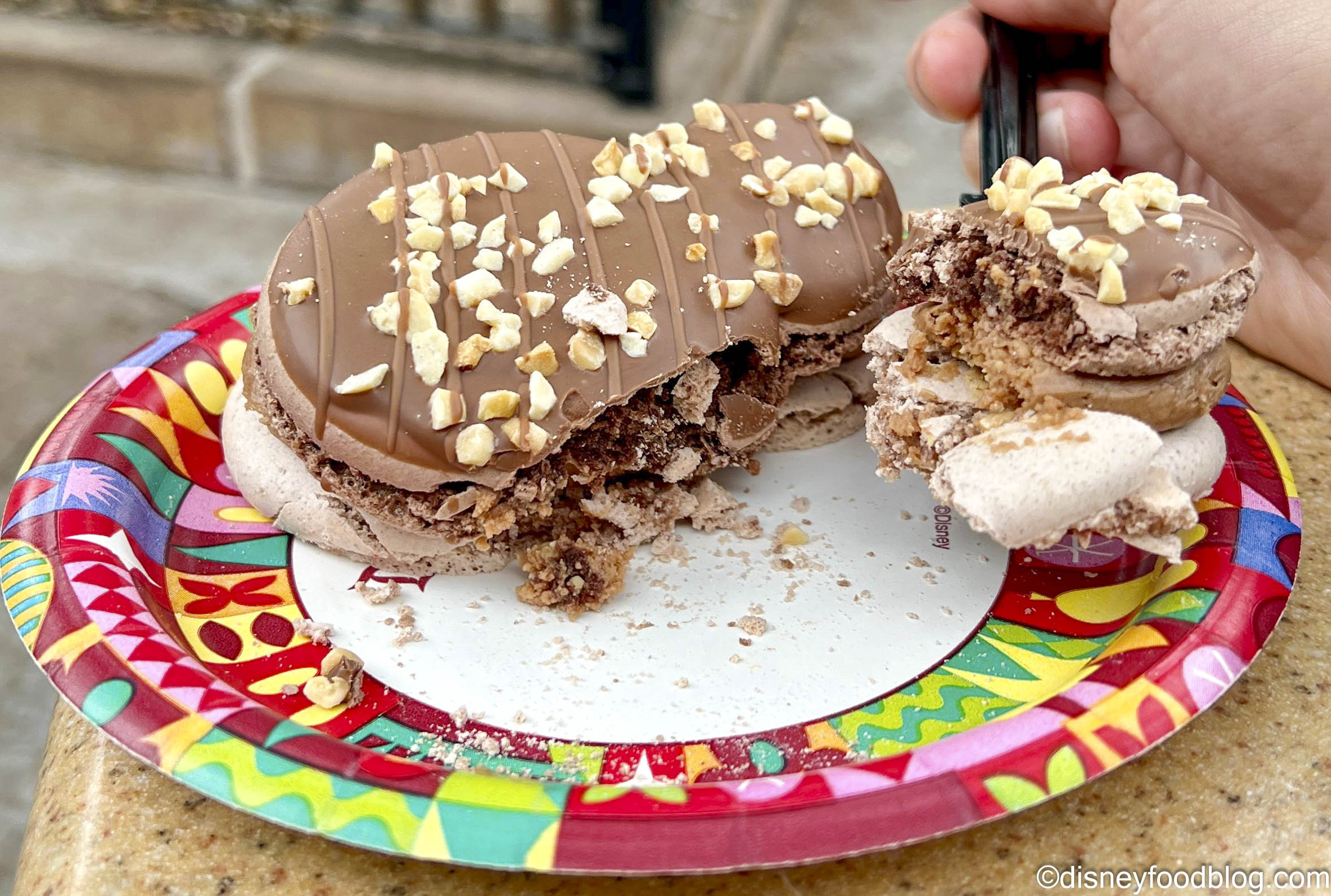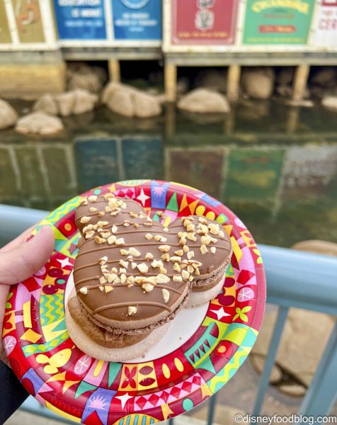 Let’s look at all of the things we love about this. We love Mickey-shaped anything. We love macarons. We love SNICKERS candy bars. We even might love this fun combination of all of these things. But do we love it at this booth?