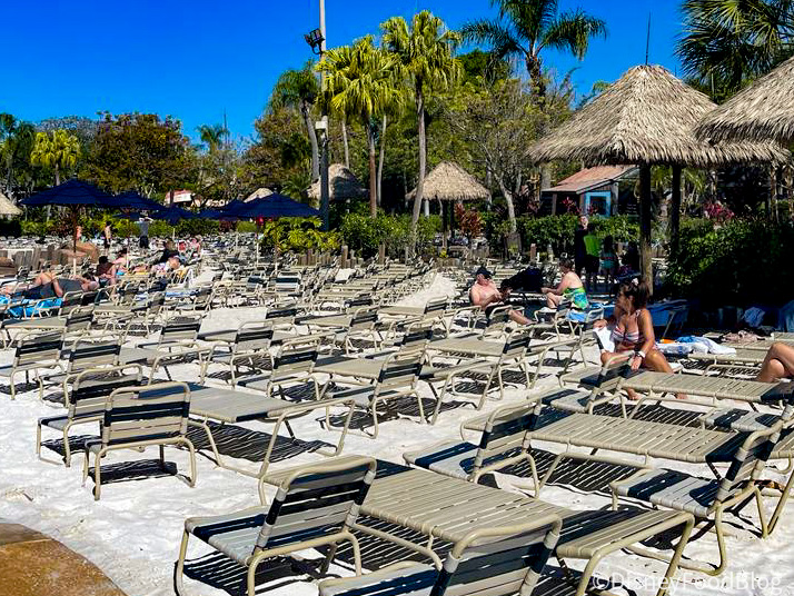Doubloon Lagoon at Port Orleans — French Quarter has a 51-foot long water slide that looks like a sea serpent, a whirlpool spa, and Mardi Gras decorations. The pool closed in January and will stay closed through April 2024.