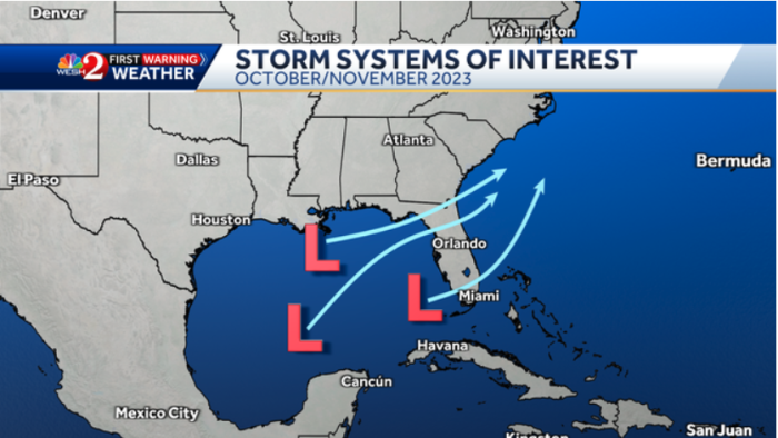 WESH News began making hurricane predictions several years ago, and last year (2023), Eric Burris was able to accurately predict how all named storms went and when they made it to the land. He predicts “hot spots” based on past patterns of weather. You can see the 2023 predictions made along with the storms that rolled through below.