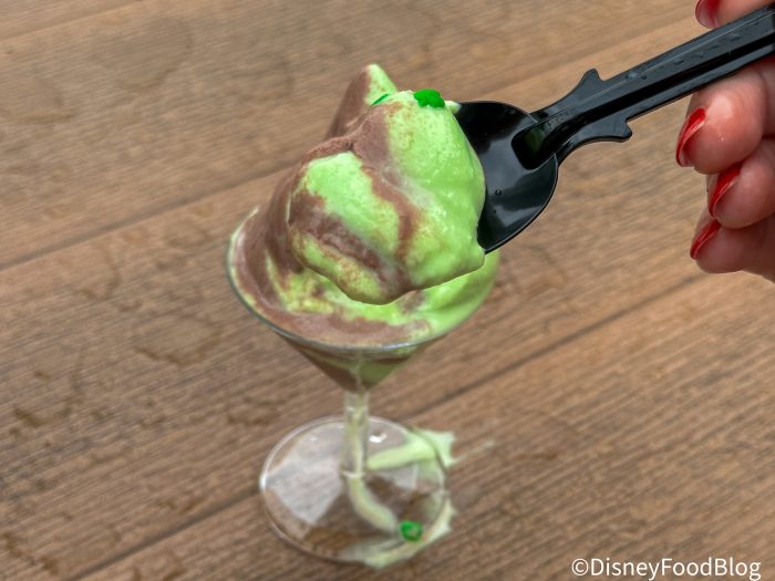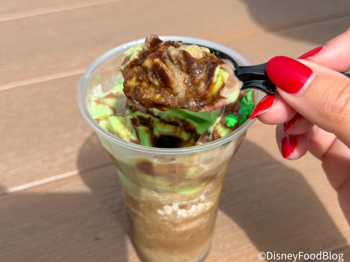 This treat was a delight! Everything about its presence just really made you excited to try it! The Mickey chocolate garnish was almost too cute to eat and we really enjoyed getting to dig into more of the fabulous pistachio and chocolate soft-serve combo.
