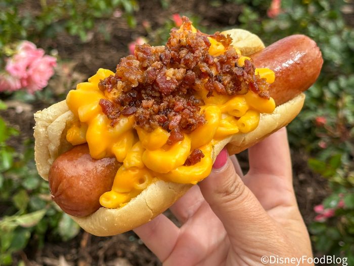 Where this meal fell flat for us was the lack of variety because tots are practically the only side served with these entrees here, and your most exciting hot dog choice is the Bacon Mac & Cheese Hot Dog that’s already served at multiple quick service restaurants around other Disney World parks.