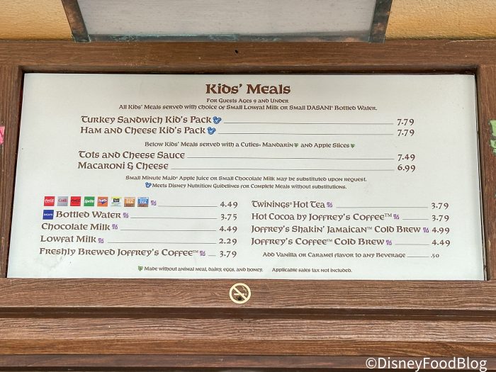 … but you’ll also find a small selection of beverages, sodas, water, and a few kids’ meal options.