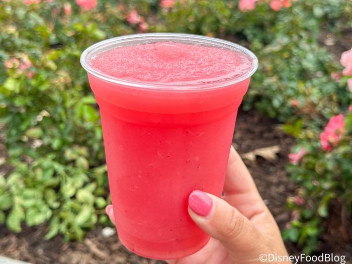 This drink tastes like a Minute Maid strawberry lemonade drink. It’s a bit tangy or tart like you would anticipate out of the Minute Maid lemonade but mixing it against the strawberry helps balance that bite down a bit. We really enjoyed this drink and questioned why we hadn’t ordered this one as a quick snack to walk around with more often. This drink could make a great “cool down” drink for someone on a super hot day. The only fault we could find with it was that it melts pretty quickly, and this particular day wasn’t terribly hot — so you’ll want to watch for that when you order one because ours came filled to the brim.