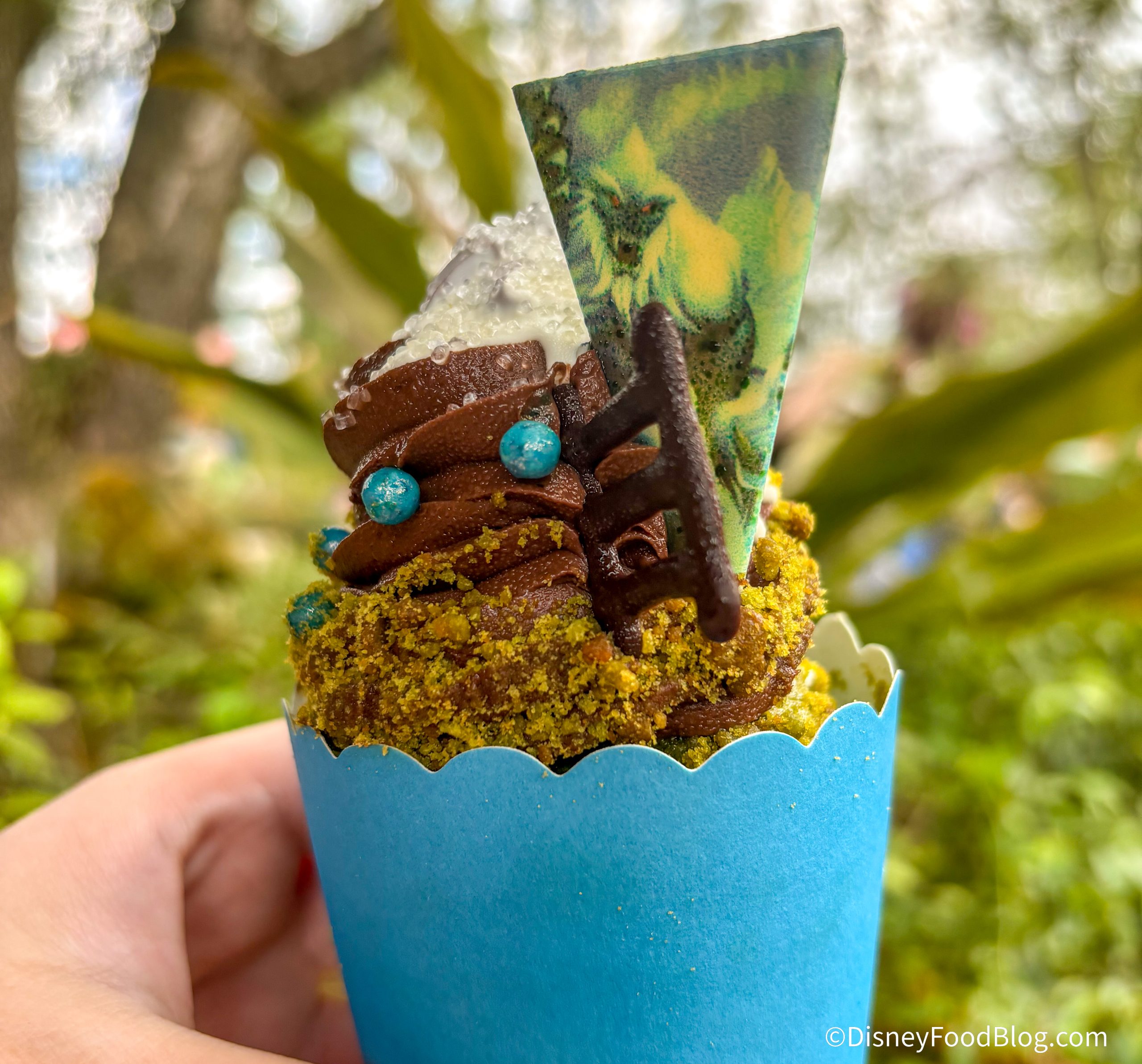 The Everest Cupcake arrived at Animal Kingdom recently and we were so excited to try it out! You can grab this treat at Pizzafari OR Restaurantosaurus! Both restaurants offer Mobile Order, so you can also order it through the app. The cupcake costs $6.29.