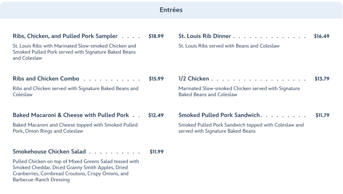 The menu you’ll find here is very heavily going to consist of carnivorous options that typically pair well with barbecue sauce. You’ll find a few souvenir specialties…