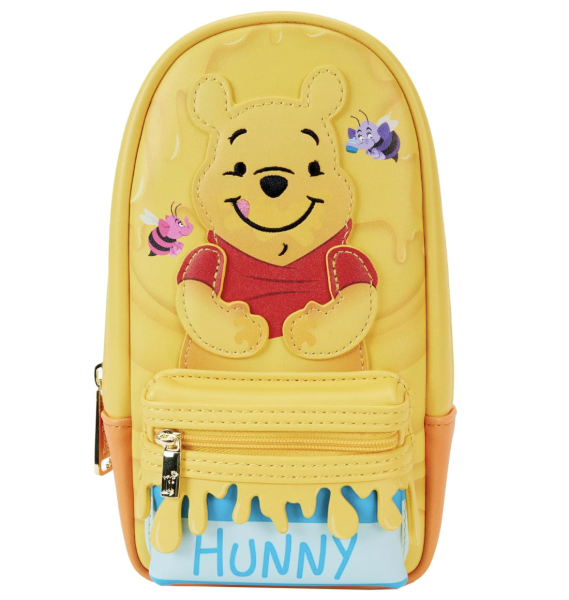 This adorable Winnie the Pooh pencil case was too cute to leave out. It has Pooh bear on the front, enjoying some honey (even though he’s surrounded by Heffalump-bees), and that front zipper pocket looks like a jar of honey!