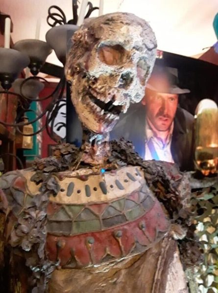 Does it look familiar? This animatronic was one of the mummy figures from the Indiana Jones Egyptian Temple scene in The Great Movie Ride. It even has a label on the base that says “Great Moments,” which was the original name of the attraction. It stands around 70″ tall (yep, it’s life-sized). The listing also says it’s in “fine park-used condition, with intentional distress to the mummy.”