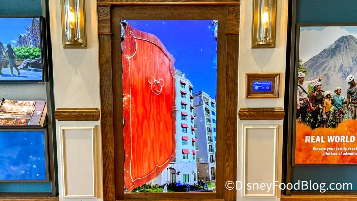 Inside, you’ll find posters talking about all things DVC, as well as some digital screens that look like a door, but they’ll open up and show you different resorts you can experience as a member. Pretty clever, eh? We like what you’re doing there, Disney!
