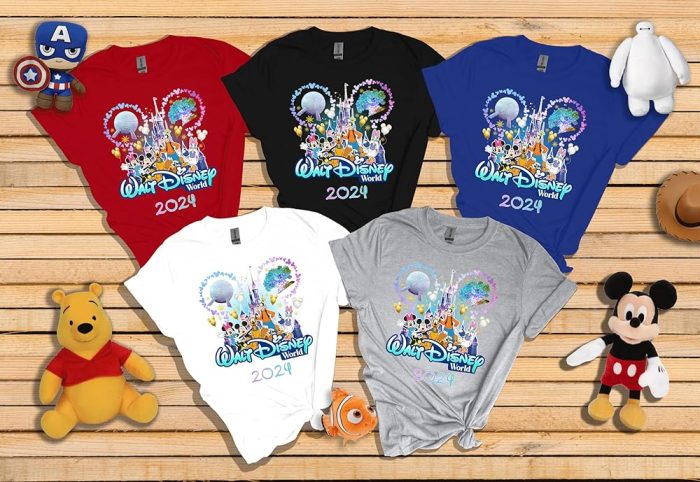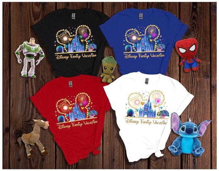 And lastly, if your group is planning to visit all four parks and meet as many characters as possible, the Disney Characters and Parks Matching Shirts may be a fantastic fit. You can choose the writing and colors to make sure everyone adores theirs.