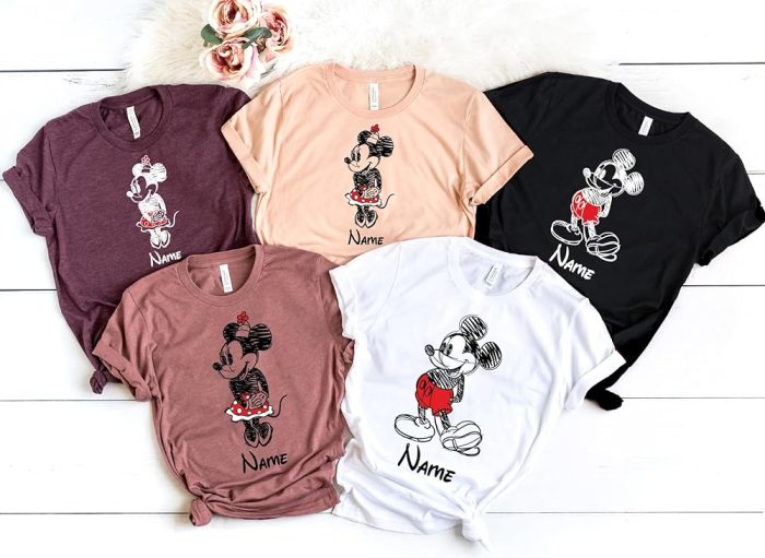 The Mickey and Minnie Matching Personalized Disney Shirts are also perfect for duos or groups who just adore Mickey and Minnie. Plus, if your group is large enough where you need two different smaller groups, you can use Mickey for one and Minnie for the other.