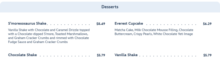 While we didn’t grab dessert this time, Restaurantosaurus currently offers two delicious desserts you can pick up! There is the Everest Cupcake for $6.29 which is a matcha cake with milk chocolate mousse filling, chocolate buttercream, crispy pearls, and a white chocolate Yeti image. We just wrote an article just about this treat that you can read here!