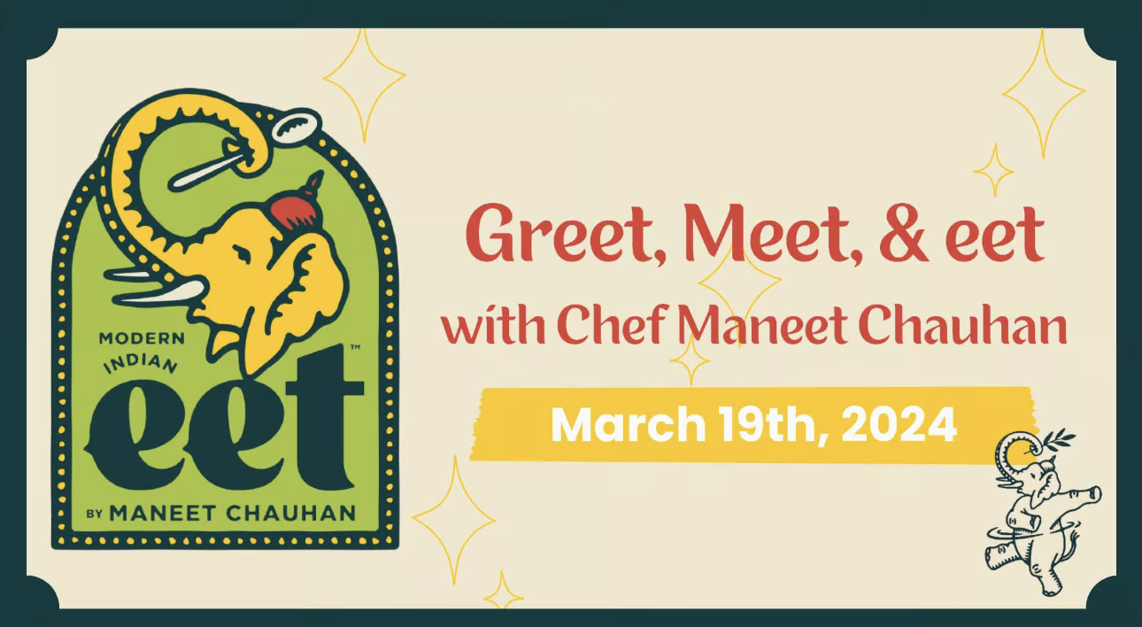Get ready to Greet, Meet, & eet with Chef Maneet Chauhan! This new experience will include a family-style meal featuring some of Maneet’s favorite globally-inspired Indian dishes.