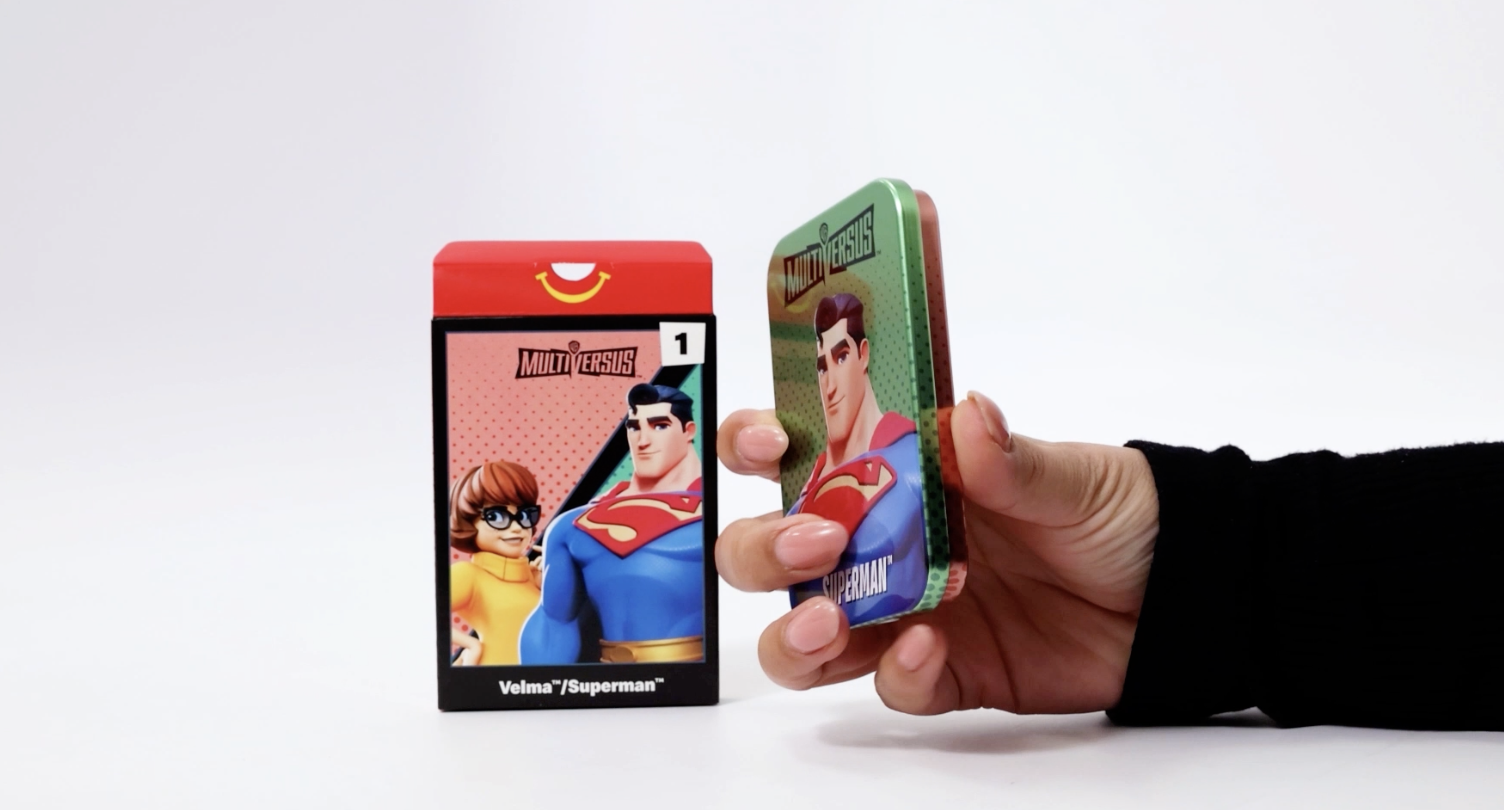 You’ll get one of six toys in your meal, and it’ll come in a double-sided tin with a different character on each side. In the tin, you’ll find a MultiVersus-themed puzzle!