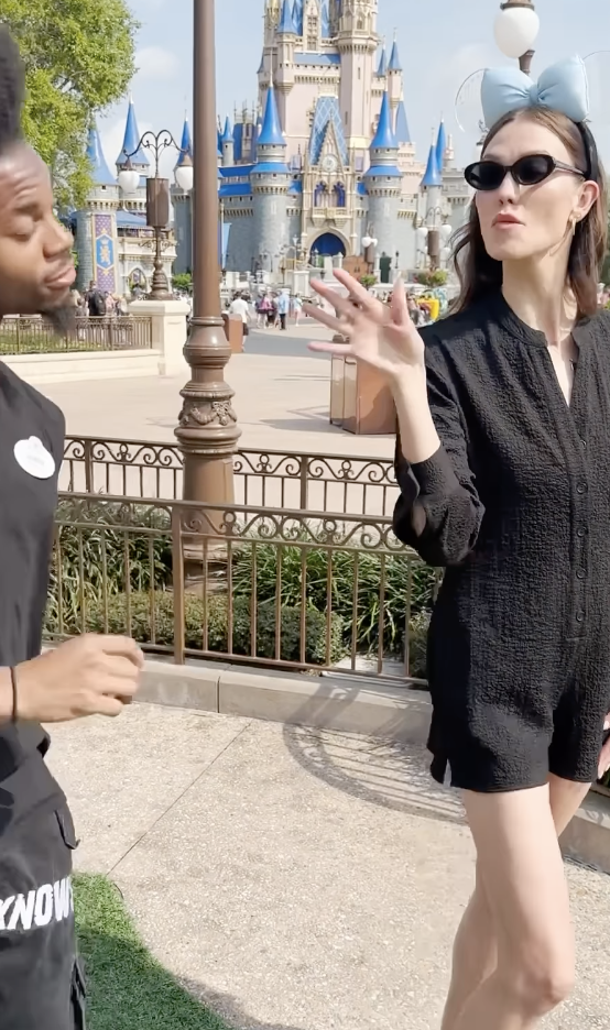 She even shared that she prefers thrill rides, Princess Belle, and then she does a really cool handshake thing with the Disney Parks social media guy.