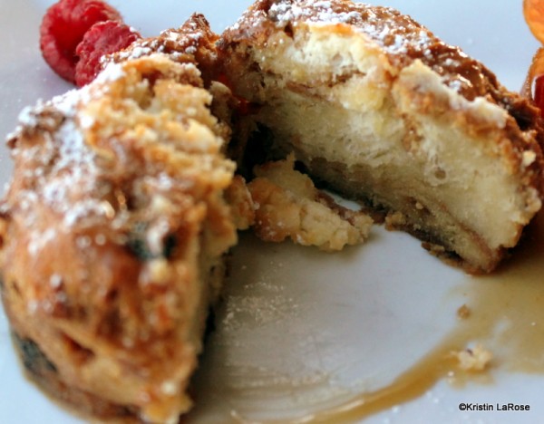 Speaking of pricey meals, let’s head INSIDE Cinderella Castle to meet some princesses and eat some food. We usually opt for beakfast here, and we almost always order the Caramel Apple-stuffed French Toast, which is French Toast stuffed with Sweet Cream Cheese and Spiced Apples drizzled with Caramel Sauce and served with Bacon. OH, YEAH.