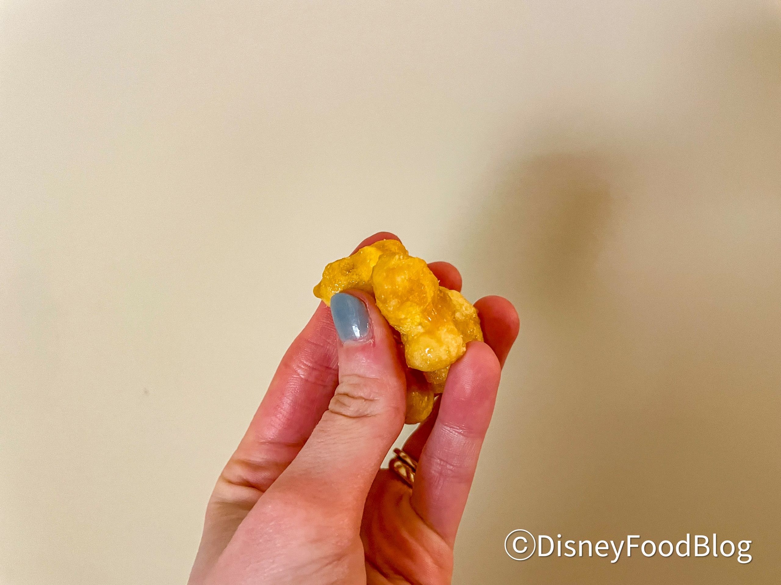 These are GOOD. They’re very sweet and have a similar flavor to Cracker Jacks but with an airier texture like a corn puff. The outside is pretty caramelized and has that *gets stuck in your teeth* feeling — so if you don’t like that, don’t try these!