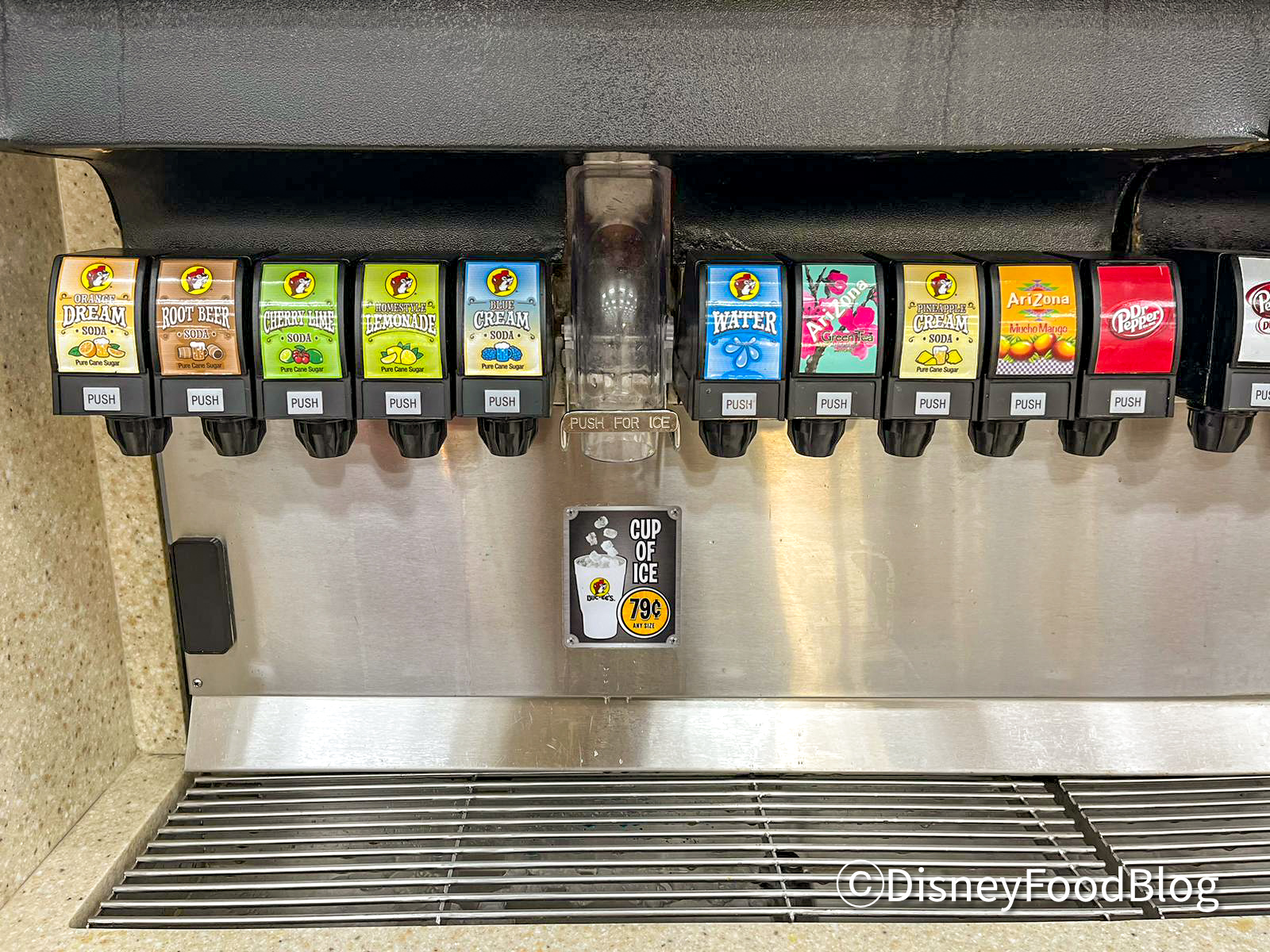 There are also several drink machines and even a coffee bar where you can grab refillable styrofoam cups and take your pick.