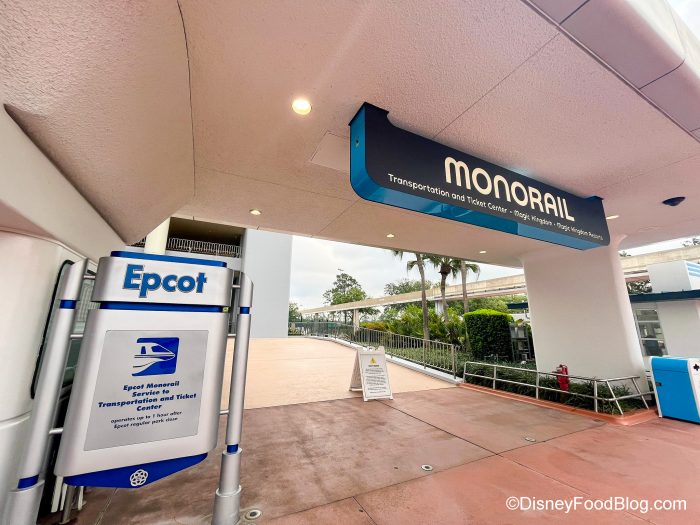 If you are traveling to EPCOT via monorail, you will board at the Transportation and Ticket Center and the only other stop on this line is EPCOT.Â