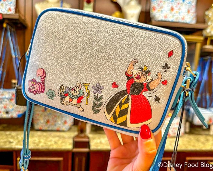 If you need a smaller bag for easier carry, check out this crossbody bag! It has the same pattern as the tote, with lots of Alice in Wonderland characters. The bag has a zipper closure on top, and there are a few interior pockets to hold smaller items.
